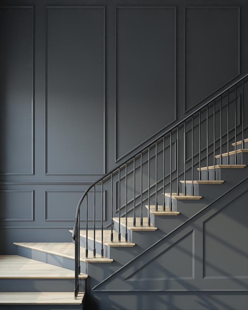 If you want to look subtly expensive, then Wainscoting is a great route. Adding geometric elements with trim gives your walls texture and interest without complications. They’re especially great for stairways or hallways since they don’t occupy any floor space.